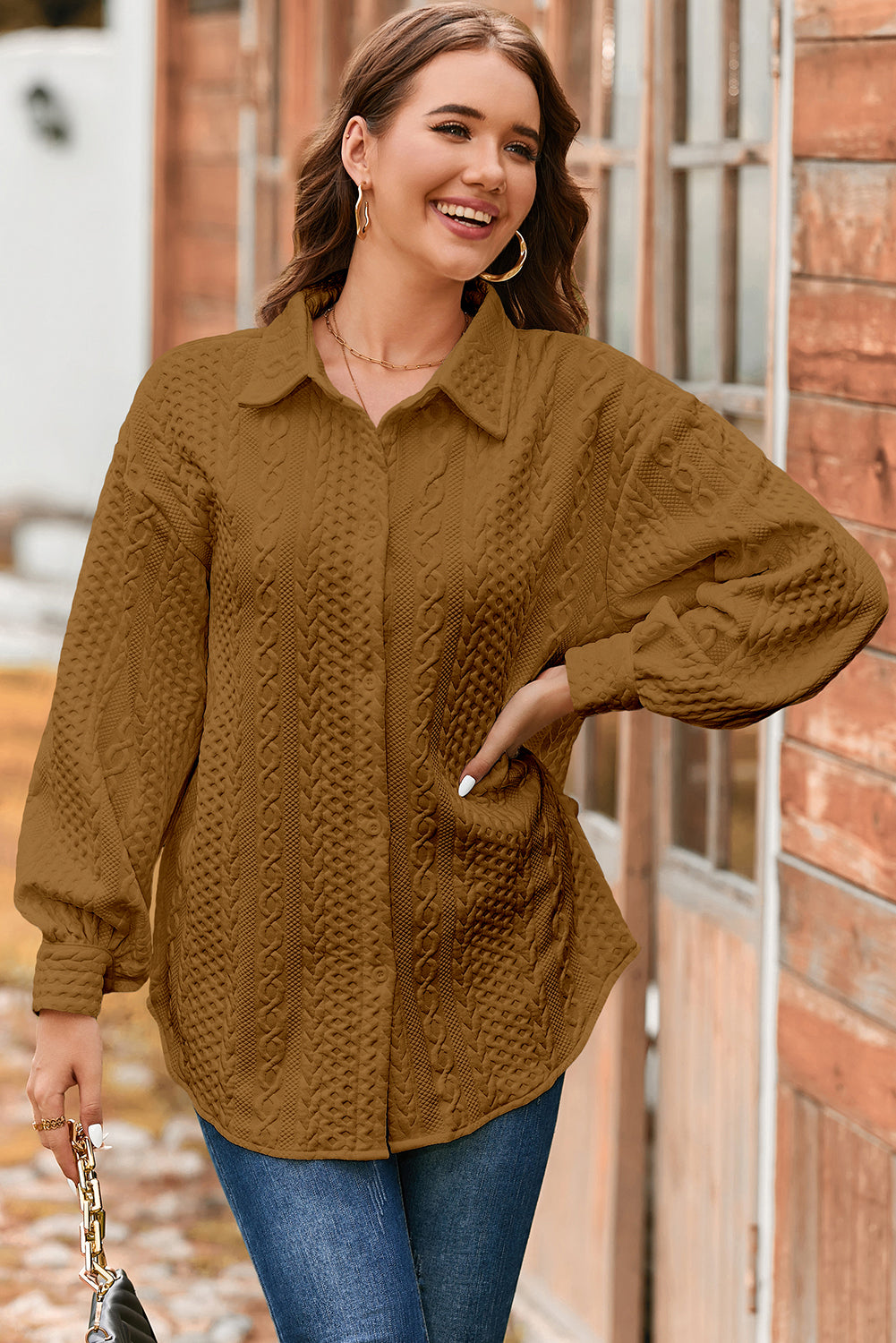 Camel Cable Texture Puff Sleeve Loose Shacket